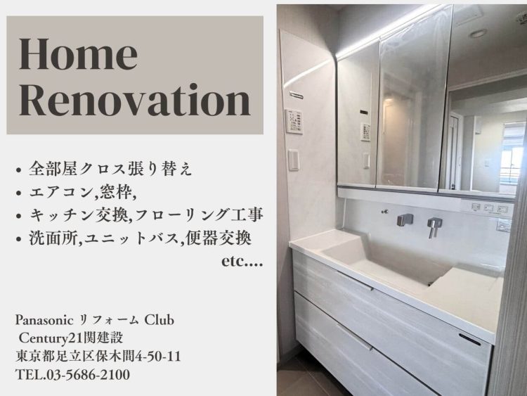 間取り変更、クロス張り替え、フローリング施工、建具交換、窓枠の入れ替え、エアコン新設、洗面所のリフォームまで、